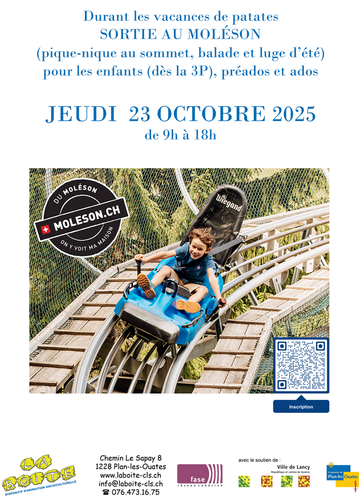 Par la présente, j'inscris mon enfant à la sortie au Moléson organisée par La Boîte le jeudi 23 octobre 2025.